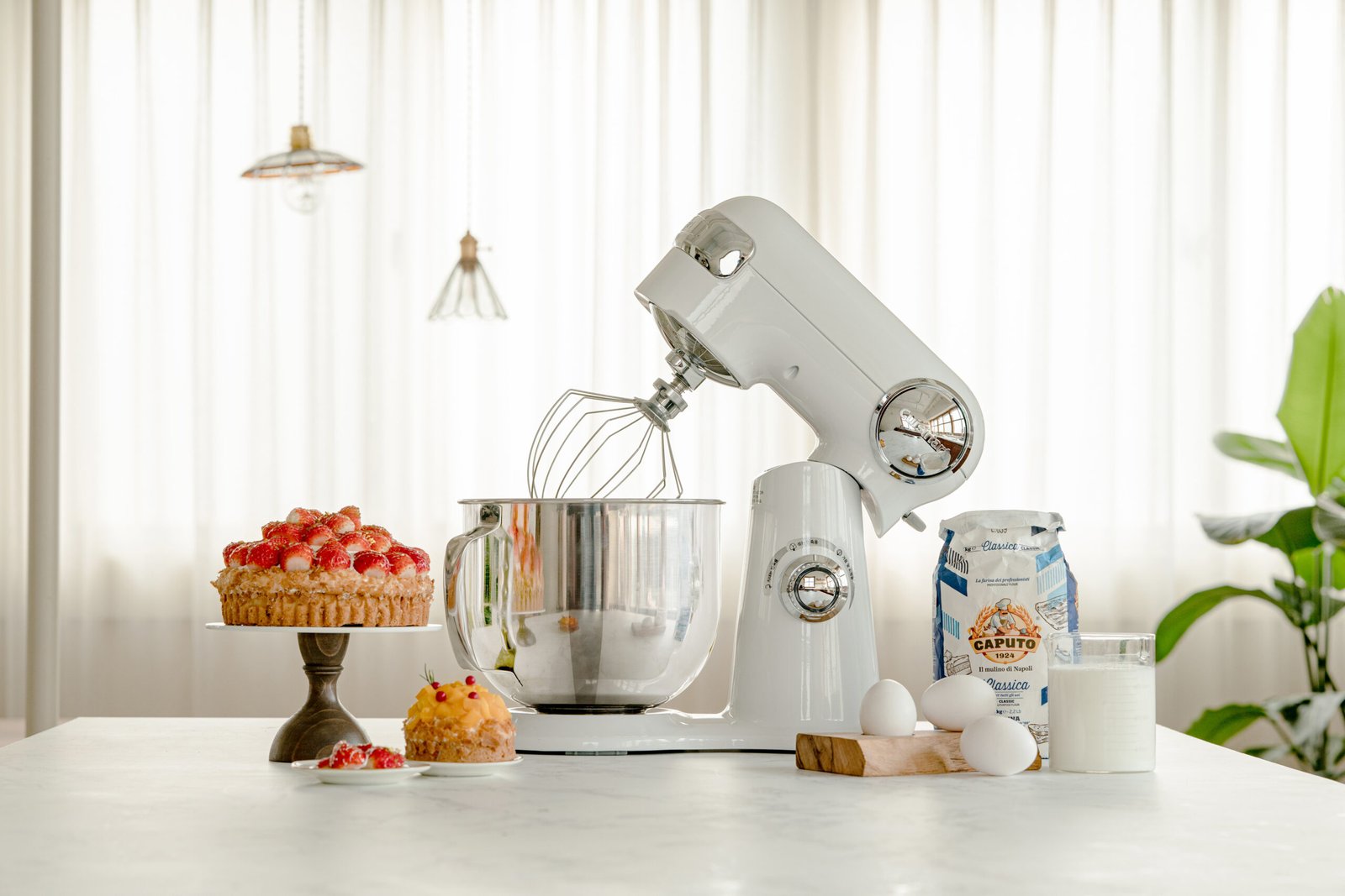 -Accessories included: Chef’s whisk/ flat mixing paddle/ dough hook/ splash guard